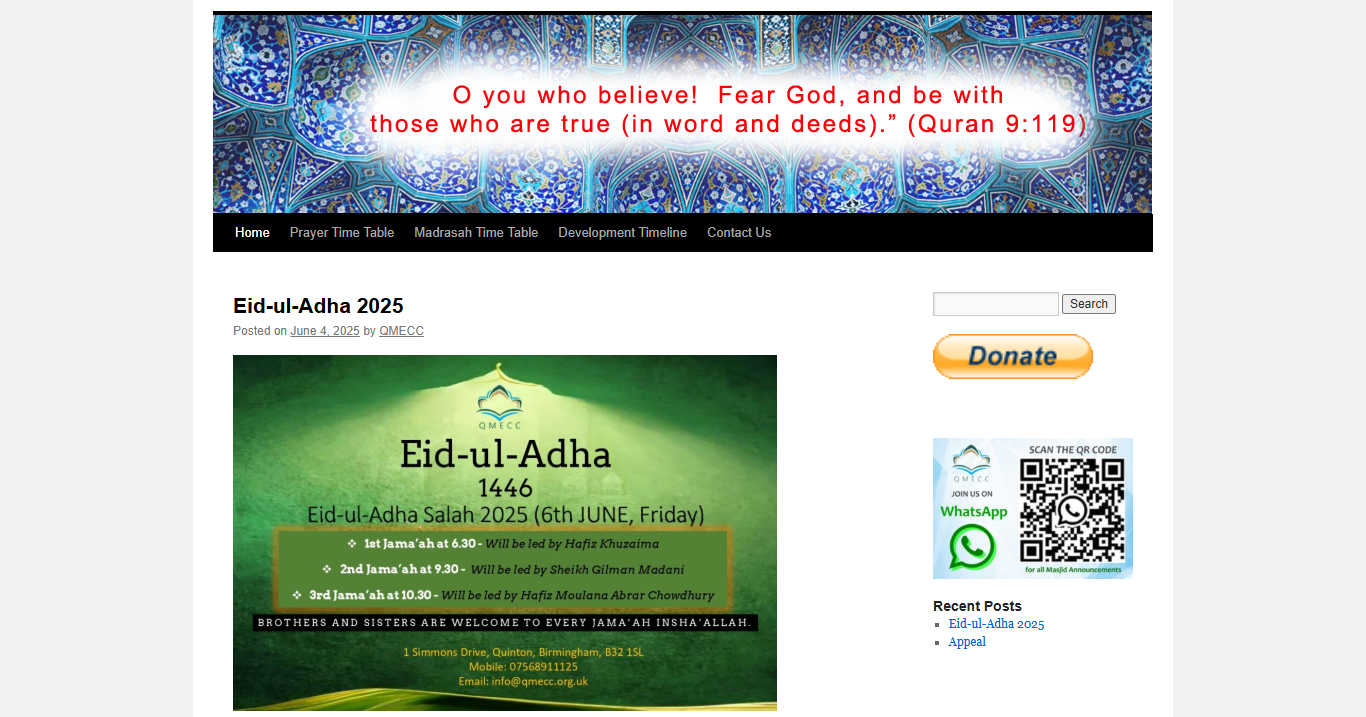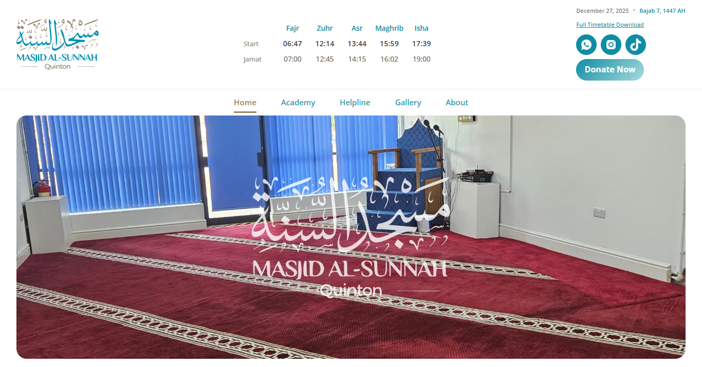 We worked with Masjid Sunnah Quinton to modernise their legacy website while adding new functionality to help them better serve their community.